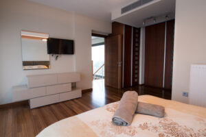 Όροφος 100 τμ. 3 υπνοδωμάτια 1 master bedroom με δικό του μπάνιο και έξτρα μπάνιο για τα υπόλοιπα δύο, αποθηκευτικός χώρος πλυντηρίου, και μπαλκόνια περιμετρικά.