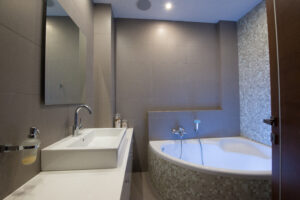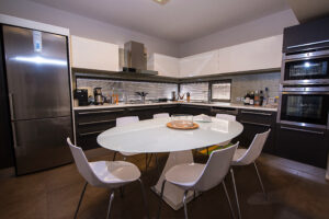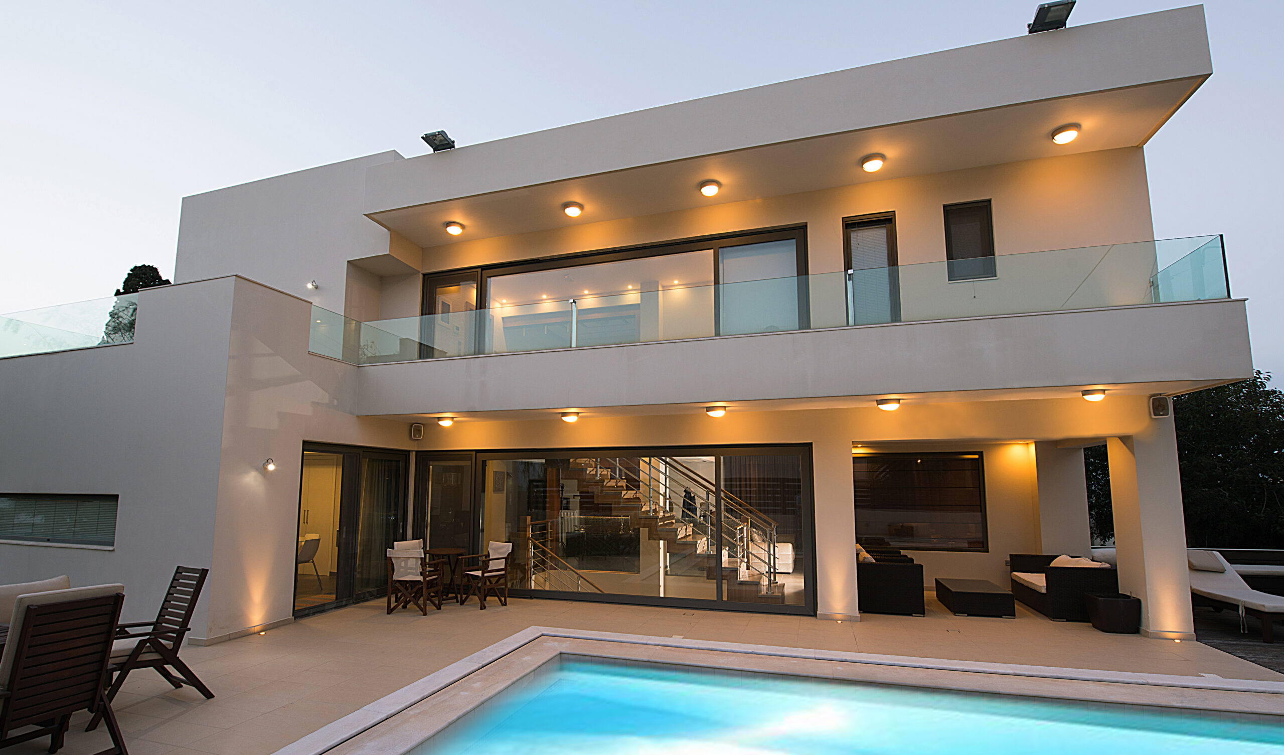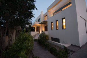 Το εμβαδόν της Βίλλας είναι 300 τμ σε 1 στρέμμα οικόπεδο. Αποτελείται από υπόγειο 100 τμ. 1 υπνοδωμάτιο με δικό του μπάνιο και κουζίνα, τελείως αυτόνομο, γραφείο με w.c, play room, δωμάτιο ντουλάπα.