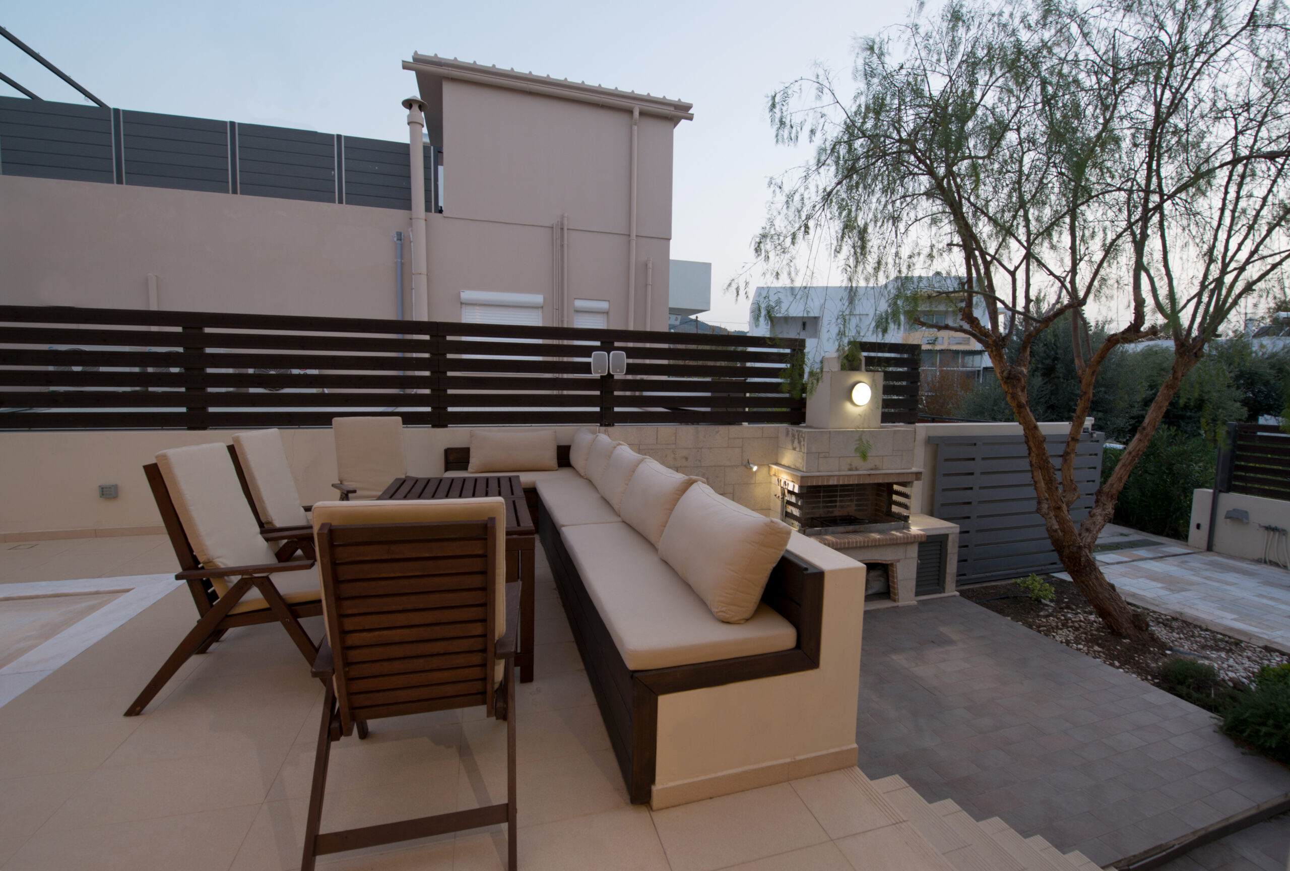Χώρος μπάρμπεκιου, ιδιωτικό πάρκινγκ, πισίνα 50 τμ. με διαστάσεις 10’5μ.