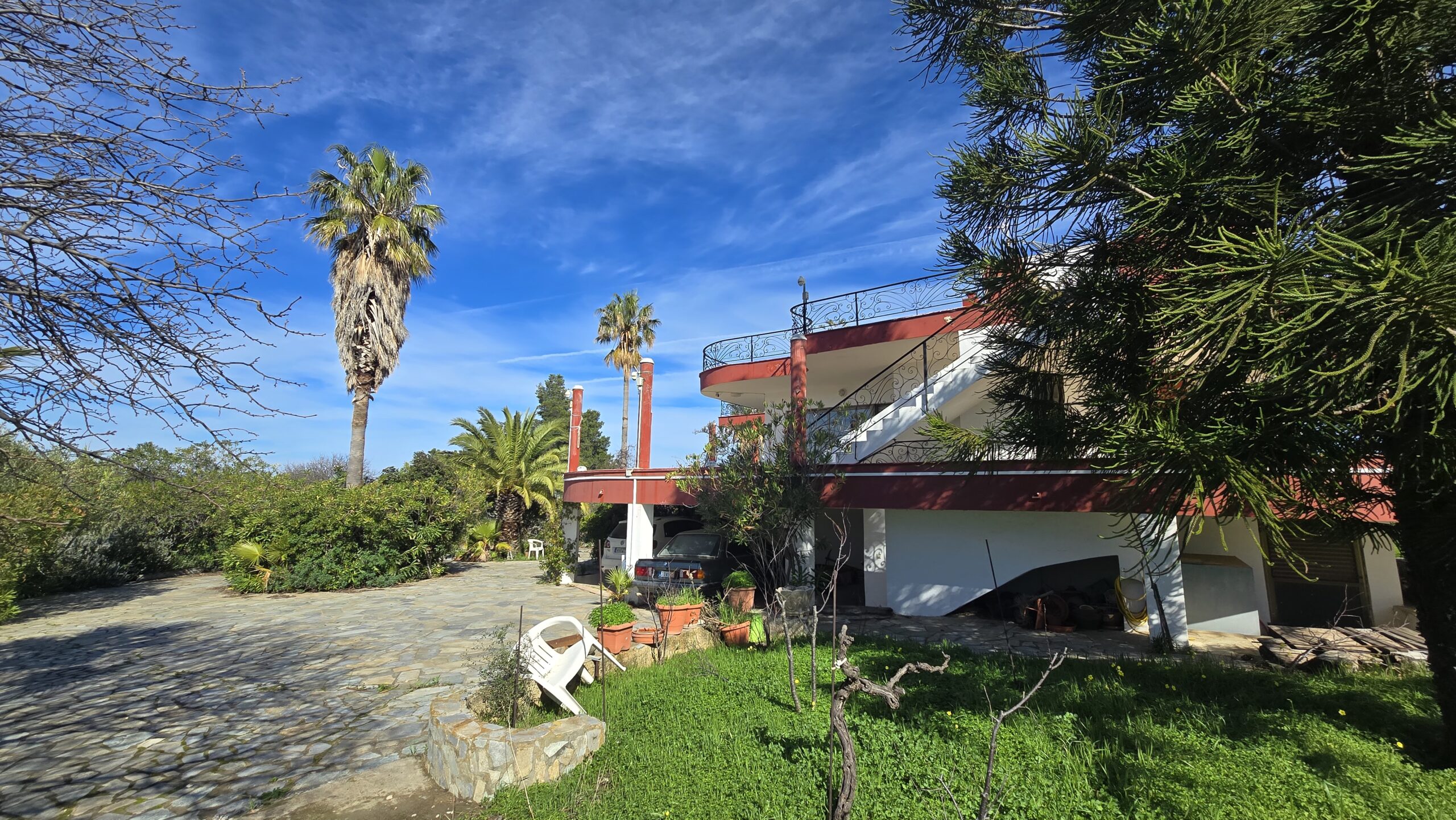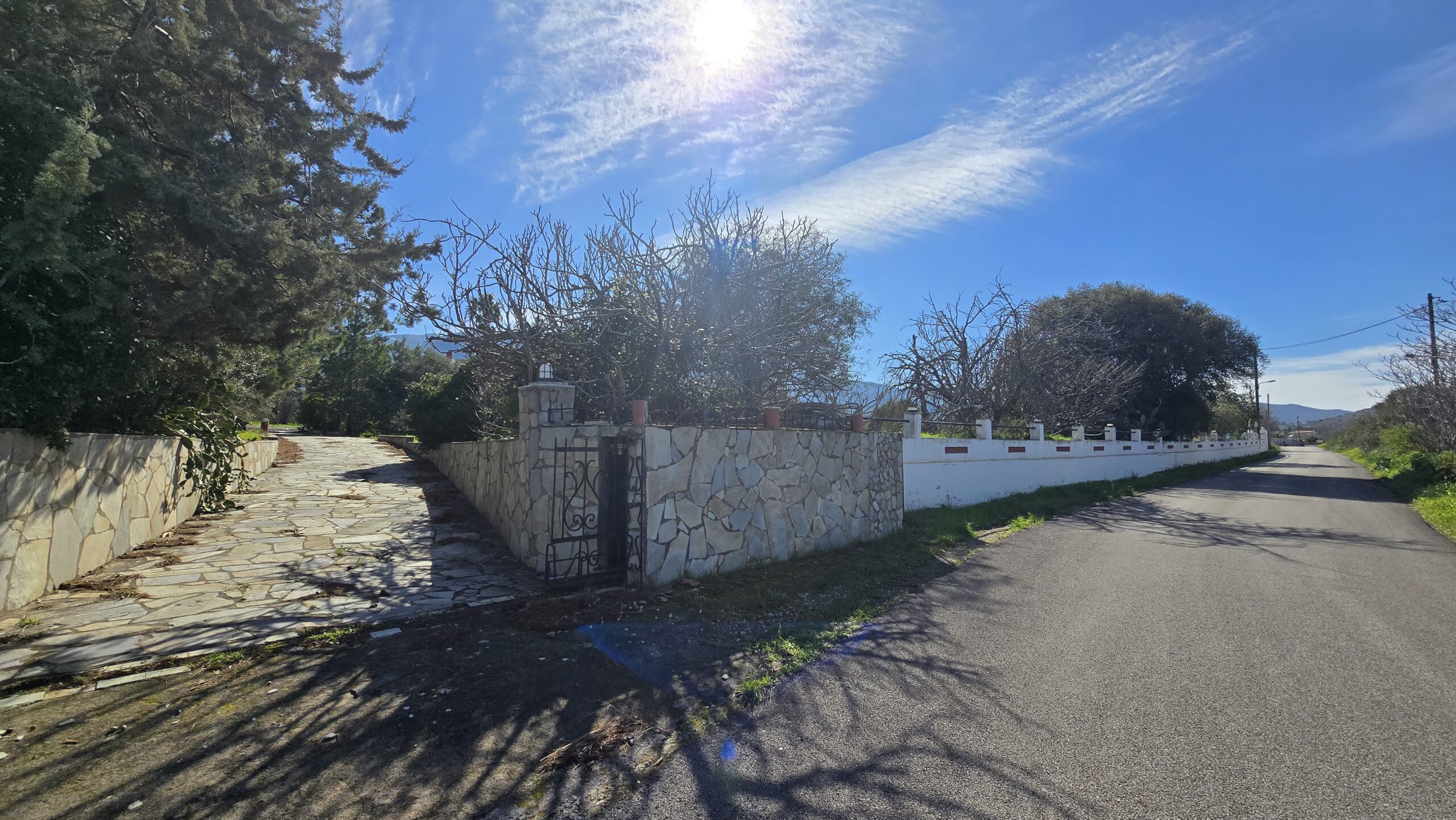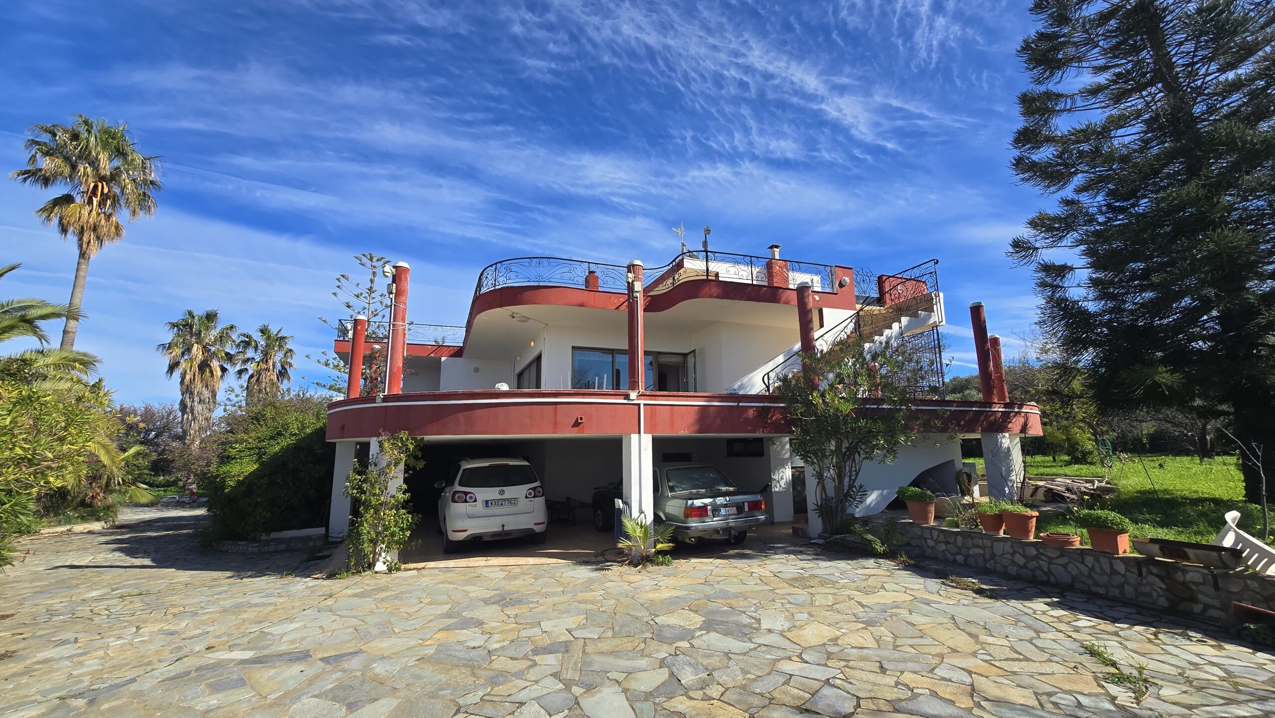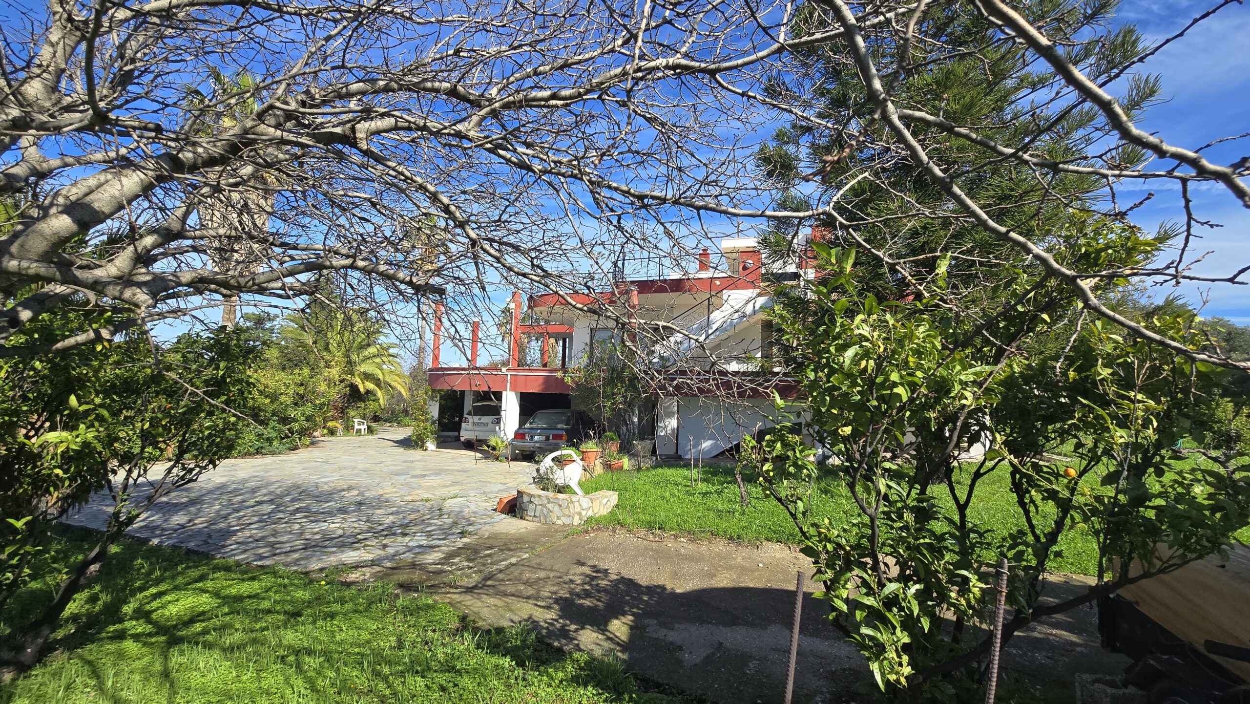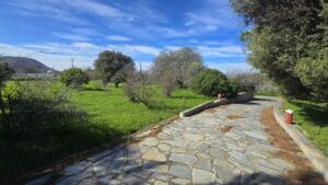 Η Μονοκατοικία αποτελείται από ένα Ισόγειο 184 τμ. 1ος Όροφος 70 τμ. Υπόγειο 153 τμ. Αποθήκη 15 τμ. Το Κτήμα έχει εμβαδόν 4.480 τμ. και μέσα σε αυτό υπάρχουν πολλά οπωροφόρα διάφορα δέντρα και μεγάλους κήπους.